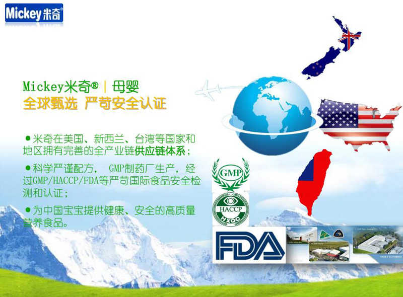 米奇·母嬰專注孕嬰營養(yǎng)品、嬰幼兒輔食/奶粉等孕嬰食品和嬰幼兒用品等系列母嬰產品的研發(fā)、生產和銷售,以全球化全產業(yè)鏈、互生再生共生構筑國際生態(tài)體系,致力于為母嬰提供健康、安全的營養(yǎng)食品和用品,在美國、新西蘭、臺灣等國家和地區(qū)同步上市。