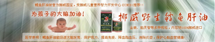 從2001年起,挪威連續(xù)6年被評(píng)為世界上生活質(zhì)量最高(最適宜居住)的國(guó)家,挪威人均用藥量只有 美國(guó)的三分之一。挪威政府十分重視孕婦和嬰幼兒的健康,2001年11月發(fā)布了為婦嬰保健人員和準(zhǔn)媽媽 寫的《嬰幼兒營(yíng)養(yǎng)指導(dǎo)》修訂本,全面闡述孩子喂養(yǎng)問題,其中36處提到鱈魚肝油。你想知道挪威人怎樣喂養(yǎng)寶寶嗎?挪亞公司現(xiàn)有中譯本,可到公司索取。