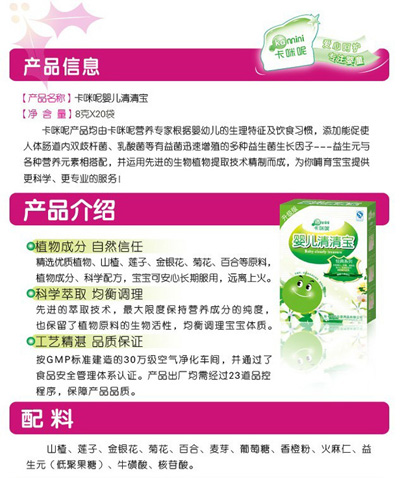卡咪呢小兒板藍(lán)根顆粒是上海卡咪呢母嬰用品有限公司旗下產(chǎn)品,專(zhuān)為嬰幼兒設(shè)計(jì),專(zhuān)業(yè)、安全,幫助寶寶可以預(yù)防感冒抵抗病毒,是廣大父母育兒的好幫手?ㄟ淠匦喊逅{(lán)根顆粒不含任何色素、防腐劑,安全放心。