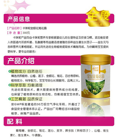 卡咪呢有機米粉系列是專為中國寶寶設(shè)計的營養(yǎng)輔食,選用有機大米,科學搭配維生素AD等維生素,還特別添加;撬帷HA、AA等有助智力發(fā)育的營養(yǎng)成分,富含15種營養(yǎng)素,F(xiàn)上?ㄟ淠啬笅胗闷酚邢薰久嫦蛉珖瞻资袌鰠^(qū)域誠招卡咪呢有機米粉代理商。