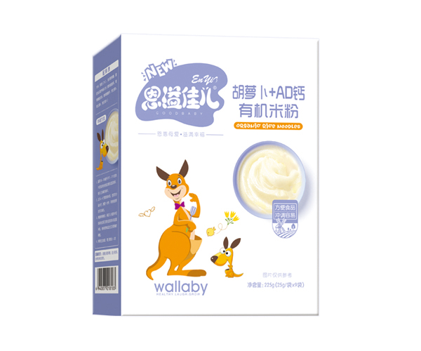 您所在位置:首頁(yè)>江西嘉寶生態(tài)食品有限公司>恩溢佳兒胡蘿卜+AD鈣有機(jī)米粉 盒裝