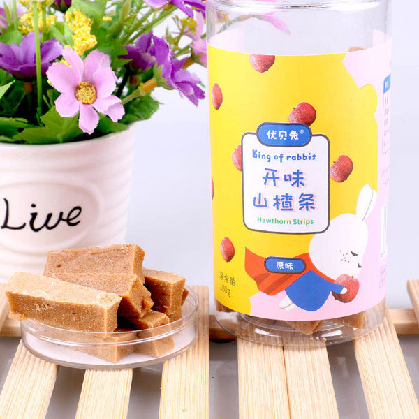 優(yōu)貝兔開味山楂系列精選優(yōu)級(jí)山楂果制作,酸甜軟糯,鮮果打漿,無色素、香精、防腐劑。有原味、草莓味、藍(lán)莓味、桑葚味等多種不同的口味。