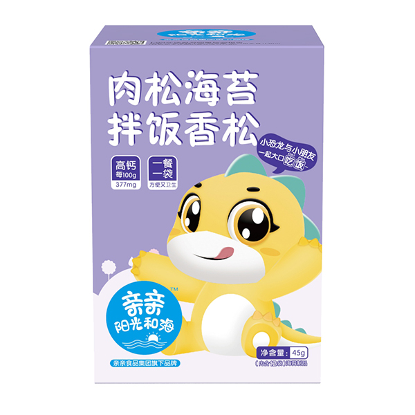 親親陽光和海-海苔拌飯香松產(chǎn)品基于寶媽受到孩子不愛吃飯強(qiáng)烈痛點,歷經(jīng)多月開發(fā),采用精致盒裝(內(nèi)置小袋)每餐使用一袋,既方便又受孩子歡迎;該產(chǎn)品采用海藻糖在用餐使用而有效降低蛀牙風(fēng)險,口味香松富含鈣,有助于孩子的骨骼發(fā)育。