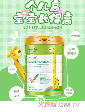 圣元個兒高兒童成長奶粉,長高鐵三角:“初乳堿性蛋白+水解蛋黃粉+高鈣”,均衡配比,助力骨骼生長!其中,鈣含量:1000mg!早晚各一杯,賦能成長!