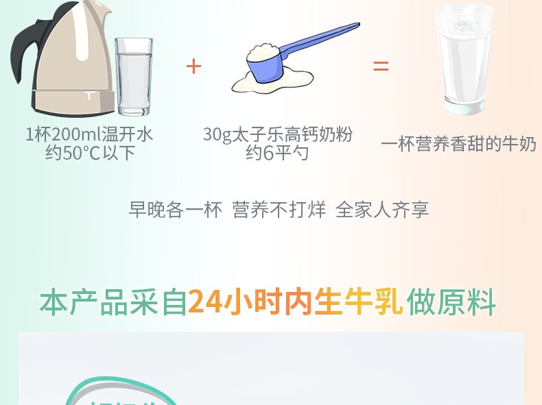 您所在位置:首頁>火爆嬰童網(wǎng)奶粉新品推薦>太子樂高鈣奶粉800g/聽 全家人適用營(yíng)養(yǎng)沖飲 添加優(yōu)鈣配方、益生菌、維生素C