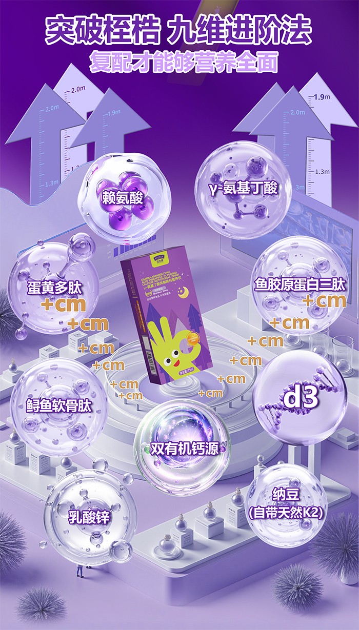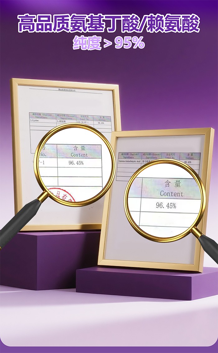 2、每袋添加95%純度以上頂高純度氨基丁酸105mg,促進生長激素的釋放。