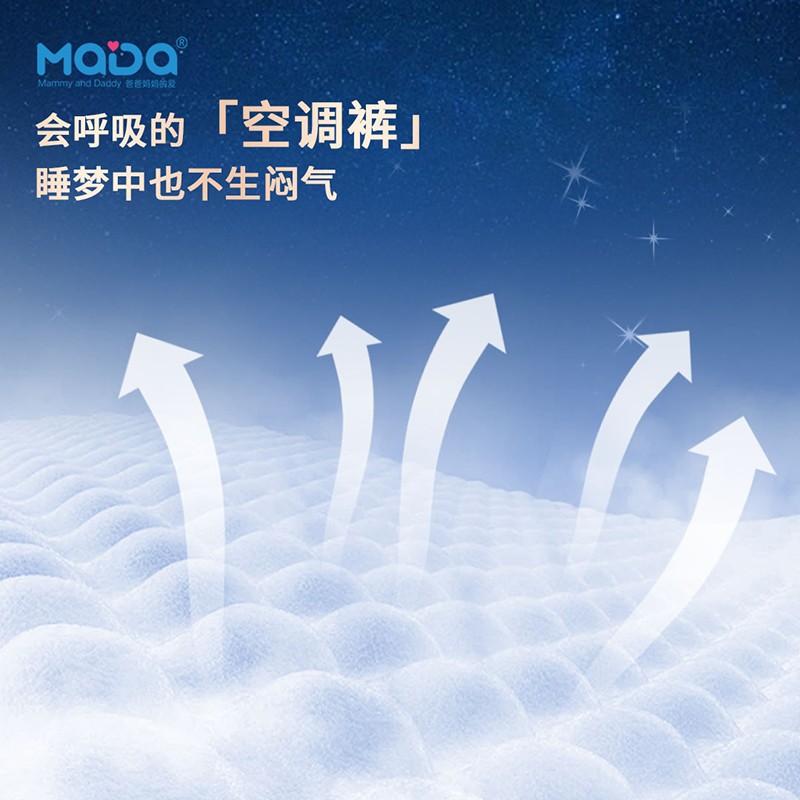 MaDa芯大系列褲型嬰兒紙尿褲,芯大20%,不漏好安心。薄若蟬翼,隔濕透氣,泡點觸膚,干爽舒適,云朵腰圍,柔軟不勒,芯體加寬,瞬吸瞬干。