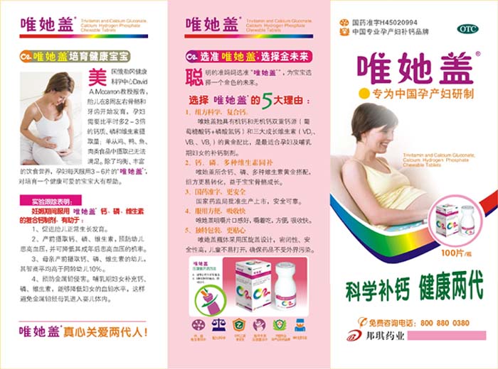 唯她蓋是湖北名珠藥業(yè)有限公司旗下的品牌,唯她蓋主要服務(wù)于婦幼保健,國(guó)家藥監(jiān)局批準(zhǔn)上市,安全可靠。唯她蓋獨(dú)具有機(jī)鈣和無(wú)機(jī)鈣雙重鈣源(葡萄糖酸鈣+磷酸氫鈣)和三大成長(zhǎng)維生素(VD2、VB1、VB2)的黃金配比,是最適合孕婦和哺乳期婦女的補(bǔ)鈣制劑。唯她蓋所含鈣、磷、多種維生素黃金搭配,組方更易轉(zhuǎn)化,益于寶寶骨骼成長(zhǎng)。唯她蓋咀嚼片口感好,嚼著吃,方便,吸收快。唯她蓋瓶體采用壓旋蓋設(shè)計(jì),密閉性、安全性高,兒童不易打,確保藥品不受外界污染。唯她蓋由邦琪藥業(yè)集團(tuán)的總廠生產(chǎn)市。采用最高等級(jí)原料藥,集團(tuán)總工全程嚴(yán)格控制生產(chǎn)工藝流程,確保每一片唯她蓋的最高品質(zhì)。