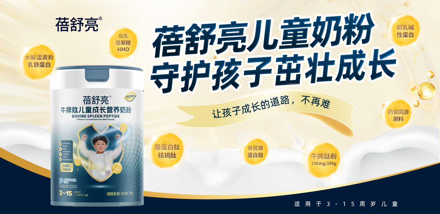 蓓舒亮牛脾肽兒童成長營養(yǎng)奶粉,適用于3-14周歲兒童,添加牛脾肽粉、水解蛋黃粉、初乳堿性蛋白、酪蛋白肽、核桃肽粉、N-乙酰神經(jīng)氨酸、雞內(nèi)金粉、菊粉、茯苓粉、山藥粉、山楂粉、蓮子粉、薏苡仁粉,藥食同源配方,科學(xué)配比,均衡營養(yǎng),全面滿足成長。