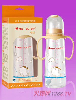 哈比PP圓形奶瓶的生產(chǎn)機(jī)器及模具全部采用德、日進(jìn)口的先進(jìn)設(shè)備,在凈化車間內(nèi)生產(chǎn)。本產(chǎn)品選用進(jìn)口的符合美國、歐盟等安全標(biāo)準(zhǔn)的嬰兒食品級材料。瓶身具有抗沖擊力強(qiáng)、透明度高、輕巧耐用的特點(diǎn),奶嘴具有強(qiáng)拉力不易破裂,符合人體工程學(xué)。能大大減少嬰兒在吸奶過程中吸入過量空氣而產(chǎn)生打嗝,嘔奶,腹絞痛,中耳炎及維生素C的流失,喝奶后可無需為bao--bao掃背。