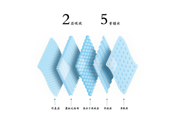 2.最新的立體懸浮沙漏結(jié)構(gòu),增大40%面積,可以上下同時(shí)吸收,增加吸收速度,減少漏尿概率。
