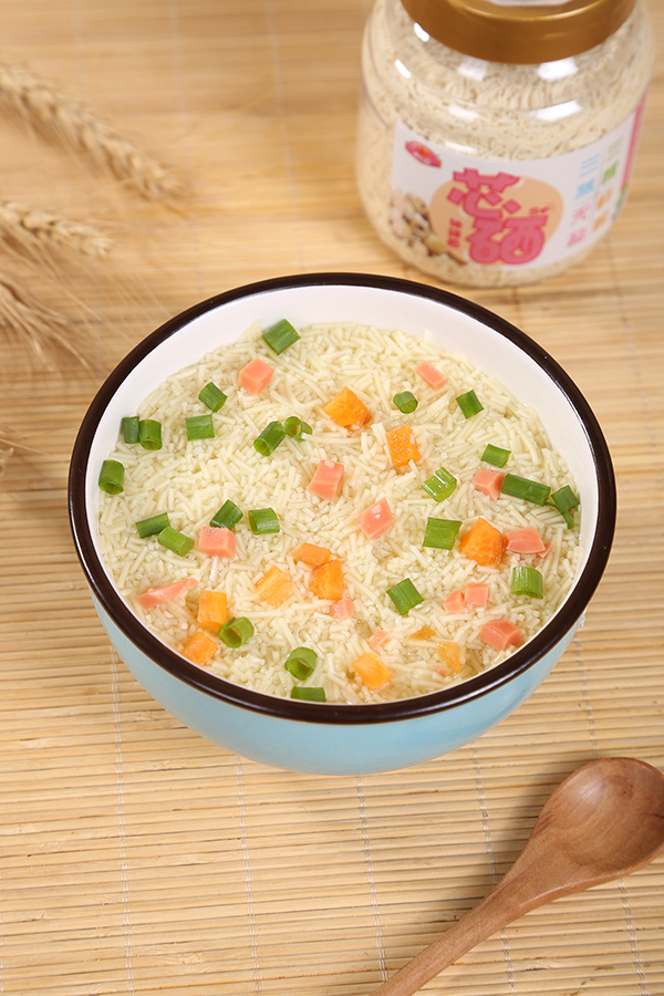 康廣利芯硒細(xì)碎面,采用麥芯粉、鮮榨蔬菜汁等優(yōu)質(zhì)食材制作,經(jīng)獨(dú)特用心調(diào)制,淡淡的雜糧和蔬菜香味進(jìn)入面條中,讓寶寶的味蕾開(kāi)始旅行。半發(fā)酵面,三醒三蒸,無(wú)鹽無(wú)添加,不含色素、防腐劑、增白劑,健康安全。易煮不渾湯,造型獨(dú)特,面體爽滑,口感美味。罐裝設(shè)計(jì),易于存儲(chǔ),干凈衛(wèi)生,食用方便。