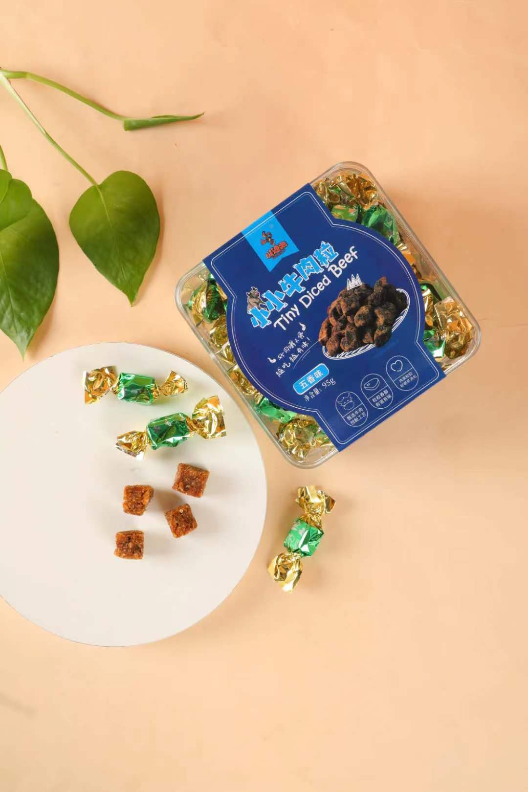 斑迪鹿小小牛肉粒,獨(dú)立包裝的牛肉粒,撕開包裝袋,一股牛肉味撲鼻而來。牛肉粒是正方形的粒狀,精選優(yōu)質(zhì)牛肉,經(jīng)多道熱加工工藝,再通過低溫慢熱烘烤得來,肉香濃郁,嚼勁十足,健康零食新選擇。