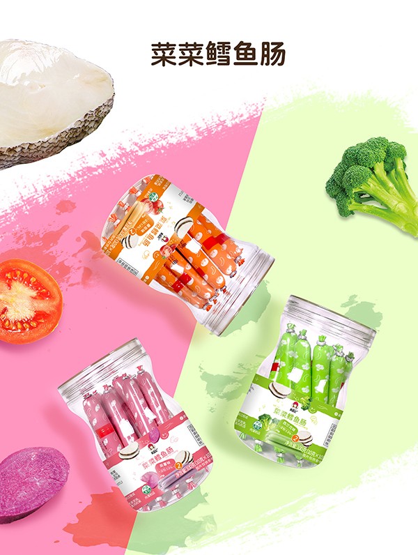 果蔬妃【菜菜鱈魚腸】創(chuàng)新融合蔬菜與鱈魚肉,鱈魚加蔬菜,營養(yǎng)更全面,色澤誘人,配方安全,促進(jìn)寶寶成長發(fā)育,有番茄、西蘭花和紫薯三種口味可選!